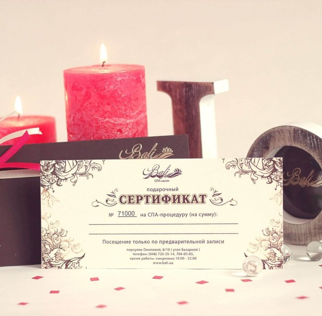 Не знаете, какой сюрприз подготовить для близкого человека? Подарите сертификат на услуги салона Bali!
